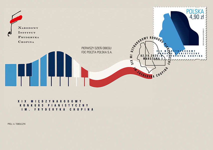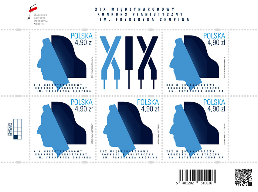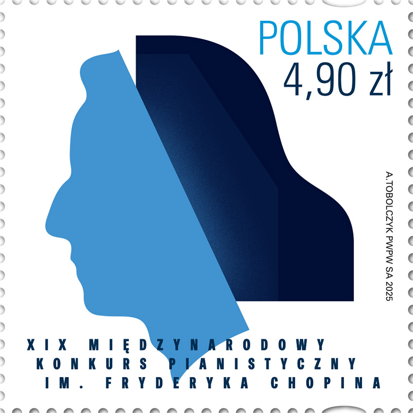 2 października 2025 roku do obiegu wchodzi znaczek pocztowy o wartości 4,90 zł, na którym przedstawiono oficjalną grafikę XIX Międzynarodowego Konkursu Pianistycznego im. Fryderyka Chopina.