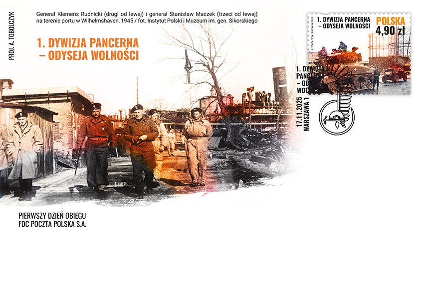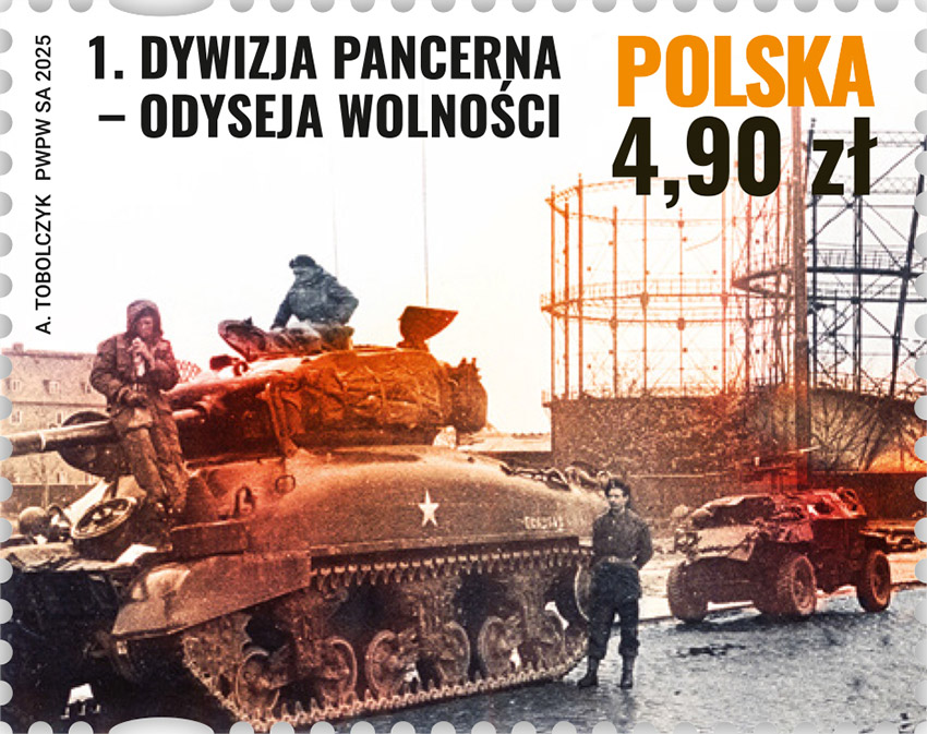 17 listopada 2025 roku do obiegu wchodzi znaczek pocztowy o wartości 4,90 zł, na którym przedstawiono fotografię czołgu Sherman, 1. Dywizji Pancernej obok zniszczonych zbiorników gazu w Wilhelmshaven w 1945 r.