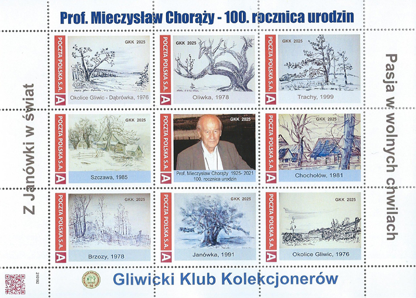 Gliwicki Klub Kolekcjonerów trzecim już arkuszem znaczków obrazującym pozazawodową pasję Profesora kontynuuje cykl wydawnictw filatelistyczno-numizmatycznych upamiętniających prof. Mieczysława Chorążego.