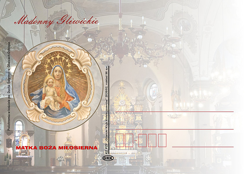 Klub Zainteresowań PZF "Gliwicki Klub Kolekcjonerów" wyemitował kolejną kartkę pocztową z serii "Madonny Gliwickie". Prezentuje ona fragment polichromii przedstawiający Matkę Bożą Miłosierną z kościoła pw. Ducha Świętego w Gliwicach-Ostropie.