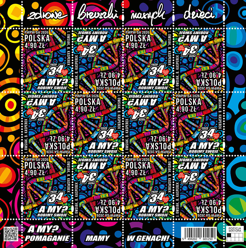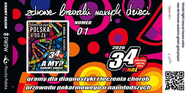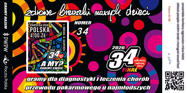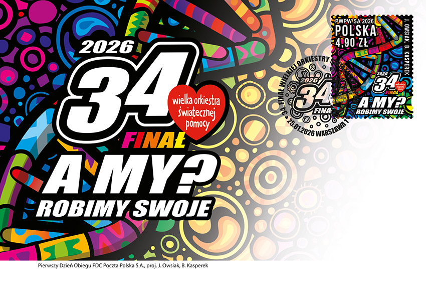 25 stycznia 2026 roku do obiegu wchodzi znaczek pocztowy o wartości 4,90 zł, na którym przedstawiono grafikę 34. Finału Wielkiej Orkiestry Świątecznej Pomocy.