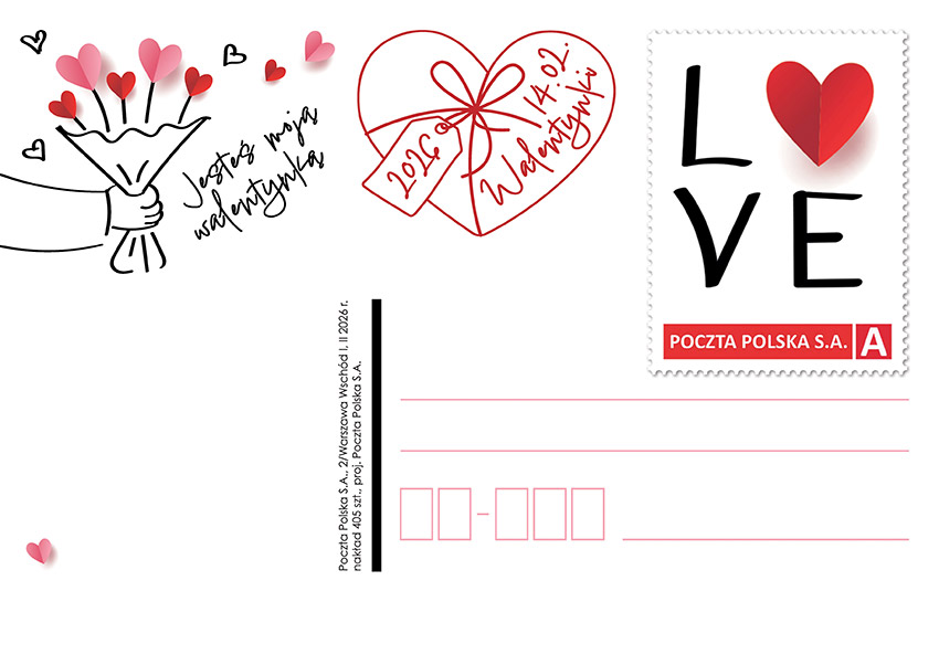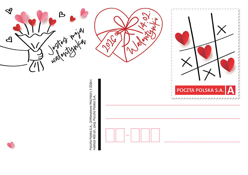 Od dziś w sprzedaży (tylko w e-sklepie) zestaw 3 kartek okolicznościowych "Walentynki 2026" - wyjątkowy zestaw 3 kartek walentynkowych ze znaczkami inspirowanymi tegorocznym arkusikiem okolicznościowym MójZNACZEK Walentynki 2026. Każda kartka ozdobiona jest innym motywem: romantyczną kopertą pełną serduszek, trójwymiarowym napisem LOVE oraz zabawną grą kółko‑krzyżyk, w której zawsze wygrywa miłość. Kartki są ręcznie ostemplowane stemplem pocztowym.