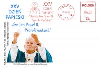 XXV Dzień Papieski 2025.09.12. 08:55 (9582) Z okazji XXV Dnia Papieskiego przypadającego 12 października 2025 r. przygotowano arkusz znaczków oraz kartkę (nakład 150 sztuk).